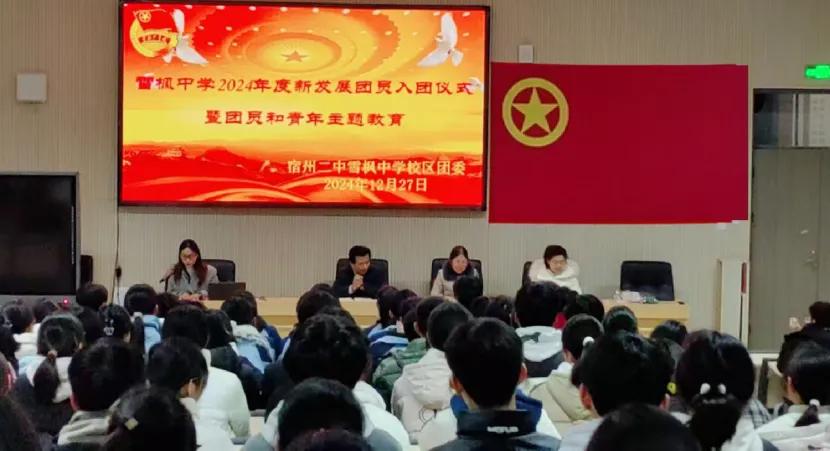 青年興則國興,青年強則國強。黨有號召,團在行動,共青團員爭做新時代接班人。2024年12月27日,雪楓中學校區(qū)舉行2024年度新發(fā)展團員入團儀式暨團員和青年主題教育活動。此次入團儀式由2022級團總支負責人劉會妹老師主持,參加本次儀式的有雪楓校區(qū)副校長徐浩、團委書記李若偉、各年級團總支負責老師、新發(fā)展團員和各班級團支部書記。本次儀式內容豐富且意義非凡,共涵蓋了9項重要活動,每一項都承載著對新團員們的期許與囑托,彰顯著共青團組織的莊嚴與神圣。