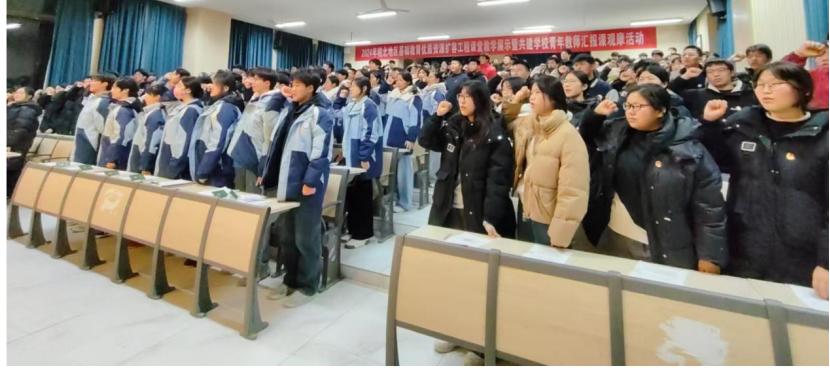 儀式第四項,高三的韓子恒同學作為新發(fā)展團員代表,他用飽含深情的話語分享著自己此刻激動的心情以及對未來的展望。他提到,加入共青團是自己青春路上的一座重要里程碑,在今后的日子里,定會牢記共青團的宗旨,勤奮學習,積極參與社會實踐,以實際行動踐行入團誓言,努力成為有理想、有道德、有文化、有紀律的社會主義建設者和接班人,為團組織增光添彩,為祖國的繁榮發(fā)展貢獻自己的力量。在韓子恒同學發(fā)言之后,趙德蘭老師站在團旗前方,舉起右拳,開啟莊嚴的宣誓環(huán)節(jié)。新團員們也迅速整齊地舉起右拳,表情莊重而嚴肅。“我志愿加入中國共產(chǎn)主義青年團,堅決擁護中國共產(chǎn)黨的領導,遵守團的章程,執(zhí)行團的決議,履行團的義務,嚴守團的紀律,勤奮學習,積極工作,吃苦在前,享受在后,為共產(chǎn)主義事業(yè)而奮斗!”那鏗鏘有力的誓言,是他們對共青團、對祖國、對人民的鄭重承諾,彰顯著新時代青年的熱血與擔當。