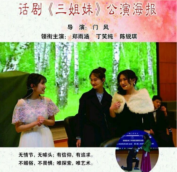 ? ? ? 春暖花開,又到與經(jīng)典話劇相約的日子。日前,宿州二中春雷話劇社師生在汴水講堂成功演出俄國作家契訶夫的經(jīng)典四幕話劇《三姐妹》。話劇社在董鳳寶等語文老師的指導(dǎo)下,學(xué)生自編自演,師生們共同勤學(xué)苦練,精心編排,使原汁原味的詩意文字與靈動(dòng)的舞臺(tái)語言融入一起,讓廣大觀眾沉浸在該劇180分鐘的精彩演出中,與主人公一起呼吸,一起感動(dòng),一起追尋詩和遠(yuǎn)方。