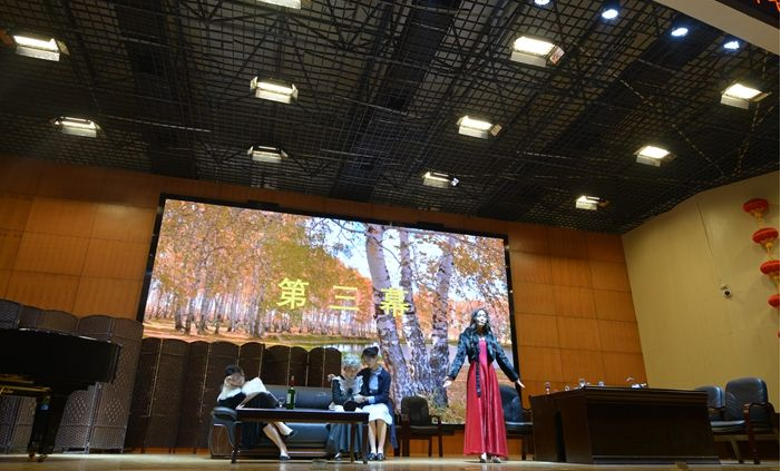 ? ? ? 雖然沒有華美炫目的舞美,但在跌宕起伏的劇情中,同學(xué)們把每個(gè)人物的特點(diǎn)刻畫得活靈活現(xiàn),各具特色,用大段散文詩般優(yōu)美又充滿哲理的語言,專業(yè)般到位又充滿激情的肢體表演給大家,展現(xiàn)出一百多年前俄國社會(huì)中人們的理想與現(xiàn)實(shí),愛情與友情、親情,善良與自私,高尚與粗鄙,生存與死亡…發(fā)人深思,無論生活如何一地雞毛,我們心中都要充滿想往——走,我們一起向莫斯科出發(fā)……