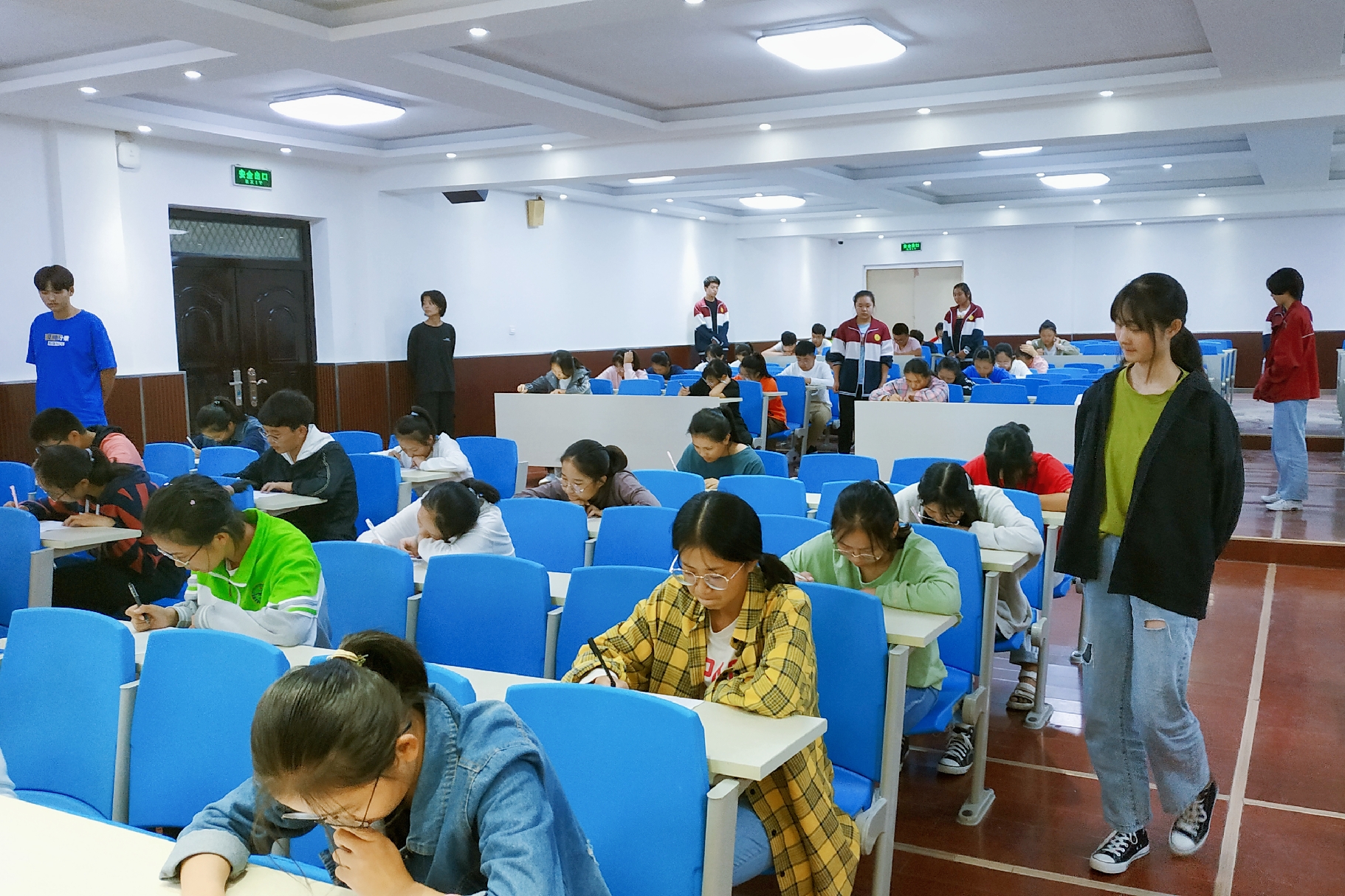 2019 年 9 月,隨著新學(xué)期的開(kāi)始,蘄韻漢服社的招新工作也正式展開(kāi)。編輯宣傳部的社員們?cè)O(shè)計(jì)招新海報(bào),社長(zhǎng)和活動(dòng)策劃部的社員們一起張貼海報(bào),并利用課余時(shí)間在校園里設(shè)置宣傳點(diǎn)向感興趣的同學(xué)們介紹社團(tuán)情況。 9 月 18 日 18 點(diǎn),報(bào)名者在 B 座教學(xué)樓五樓多媒體教室參加了招新考試。試卷內(nèi)容由社團(tuán)的編輯宣傳部擬定,指導(dǎo)老師任瀟潔修改審核。社長(zhǎng)和副社長(zhǎng)擔(dān)任主考,部分社員監(jiān)考,考場(chǎng)秩序井然,盡顯二中學(xué)子風(fēng)范。