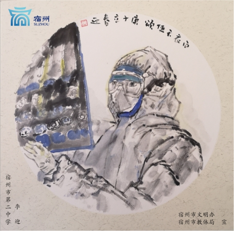 ????上圖是由宿州二中李迎老師創(chuàng)作,將作為我市抗疫期間公益宣傳廣告使用。