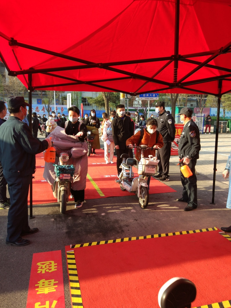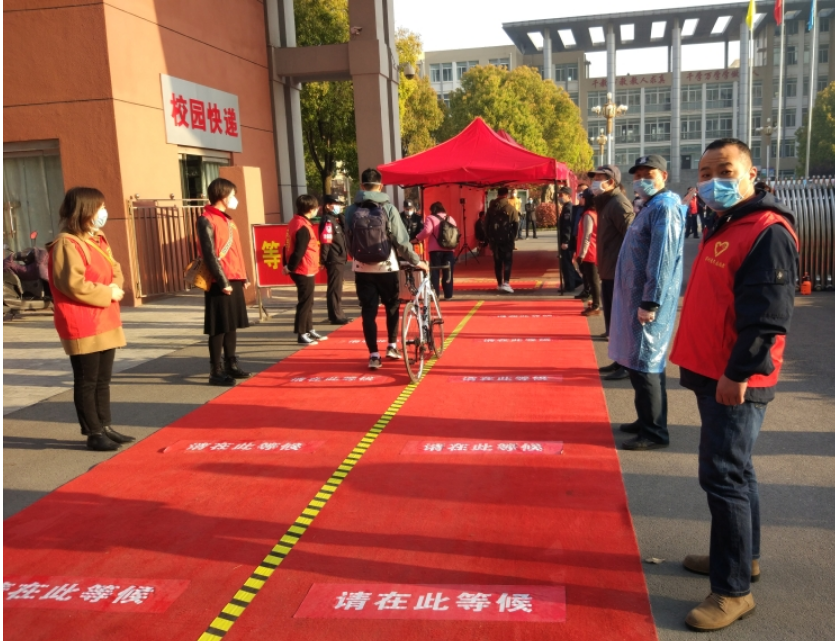 學(xué)校按照班級(jí)錯(cuò)峰入校要求,讓學(xué)生保持間距,依次消毒,經(jīng)過紅外熱成像測(cè)溫點(diǎn)測(cè)量體溫。學(xué)生體溫正常方可入校。家長不能進(jìn)入校園,黨員志愿者幫助學(xué)生把行李運(yùn)送到宿舍。學(xué)生分散進(jìn)班,進(jìn)入新編班級(jí)時(shí)再次測(cè)溫,同時(shí)上交近期體溫登記表、健康信息表、承諾書等,學(xué)校建立個(gè)人健康檔案。