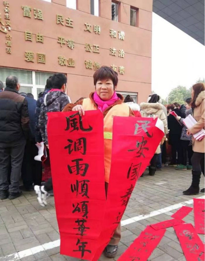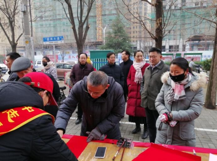 在活動現(xiàn)場,二中教師及學(xué)生志愿者揮毫潑墨,為居民寫春聯(lián),送“福”字,并寄予新春的祝福。一幅一幅散發(fā)著墨香的大紅春聯(lián)展現(xiàn)在人們眼前,現(xiàn)場一派喜慶。拿到春聯(lián)的居民臉上都洋溢著幸福的笑容。短短幾個小時,就送出了幾百副春聯(lián)。