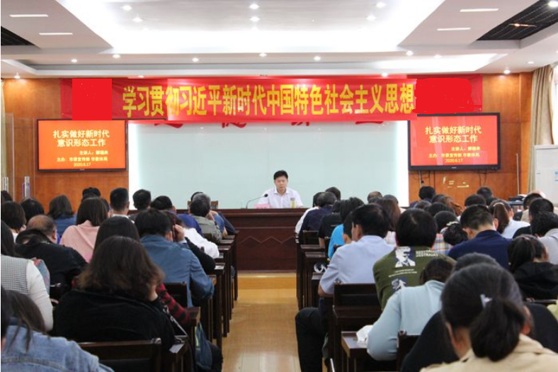 為推動(dòng)習(xí)近平新時(shí)代中國特色社會(huì)主義思想進(jìn)校園,6月17日下午4:00,宿州二中舉辦學(xué)習(xí)習(xí)近平新時(shí)代中國特色社會(huì)主義思想專題輔導(dǎo)講座。省理論宣講專家?guī)鞂<摇⑼畋毙l(wèi)生職業(yè)學(xué)院黨委書記解福來同志應(yīng)邀做“扎實(shí)做好新時(shí)代意識(shí)形態(tài)工作”專題宣講。講座由曹振鋒校長主持。王躍書記和各級(jí)部、各科室的一百多位黨員同志聆聽了講座。