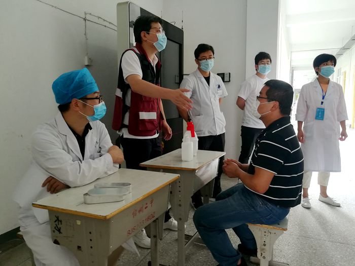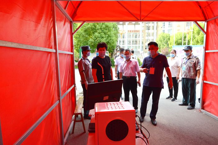 馬杰一行觀摩了我校組織的200多名師生高考演練。演練從進(jìn)入考點大門進(jìn)行消毒和紅外體溫檢測開始,依次通過安全通道和考場外的緩沖區(qū),最后進(jìn)入考場再進(jìn)行消毒。整個過程,全真模擬高考。處理考場突發(fā)情況,進(jìn)入隔離考場……各個環(huán)節(jié),考務(wù)人員和醫(yī)務(wù)人員都能明確疫情突發(fā)事件處置程序,按照規(guī)定流程無誤操作。