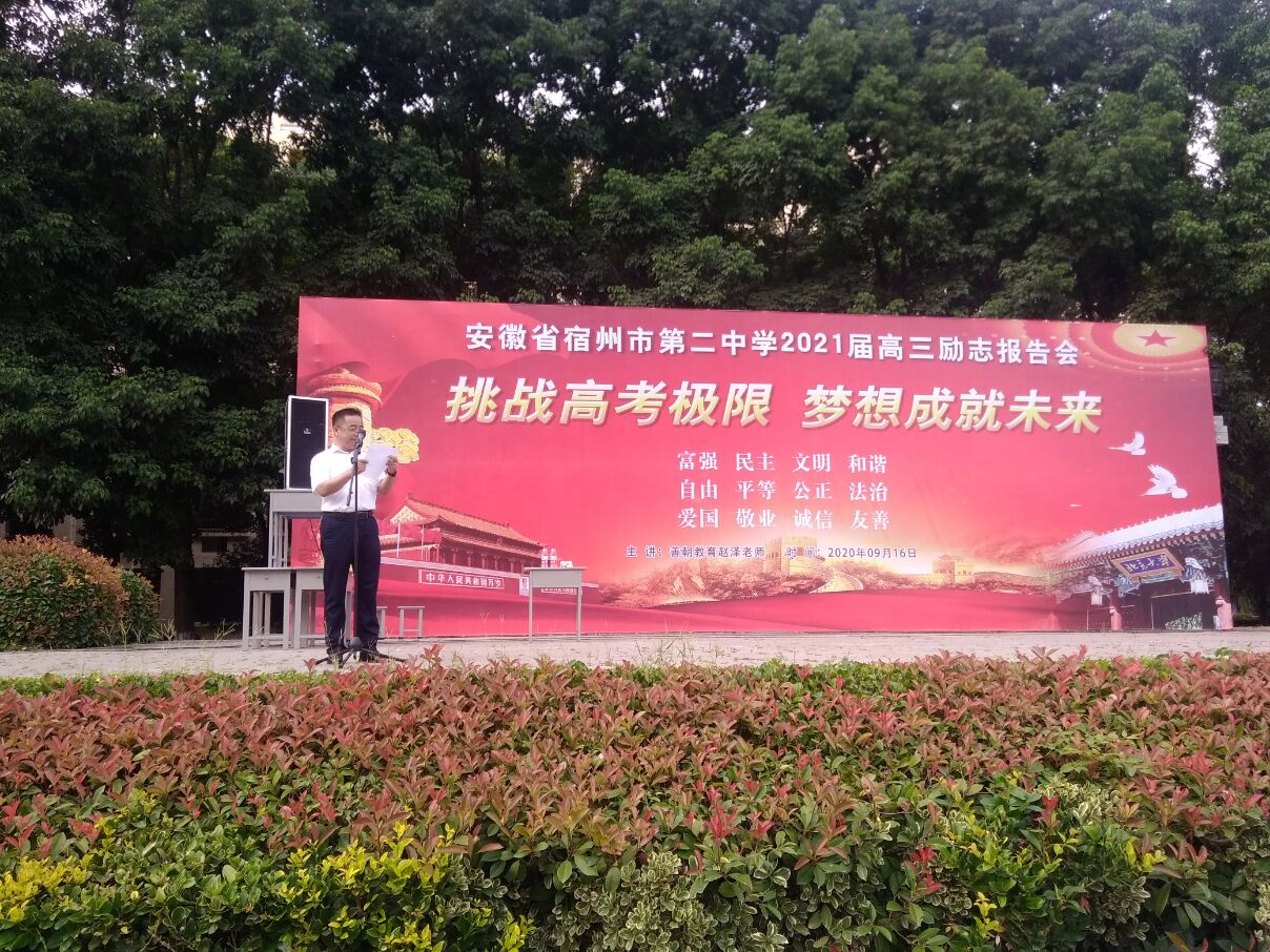為了幫助我校高三學(xué)生點(diǎn)燃學(xué)習(xí)激情,樹立高考必勝的信念,2020年9月16日下午,我校高三年級(jí)在文化廣場(chǎng)舉辦了以“挑戰(zhàn)高考極限?夢(mèng)想成就未來”為主題的勵(lì)志報(bào)告會(huì)。參加報(bào)告會(huì)的除了高三全體同學(xué),還有高三應(yīng)屆全體班主任以及高三年級(jí)部領(lǐng)導(dǎo)。報(bào)告會(huì)由著名青年勵(lì)志演說家、青少年人生規(guī)劃導(dǎo)師、中國學(xué)生心理成長網(wǎng)高級(jí)簽約講師、善朝教育金牌講師趙澤老師主持,由校紀(jì)委趙亮?xí)浿鞒帧?/p>