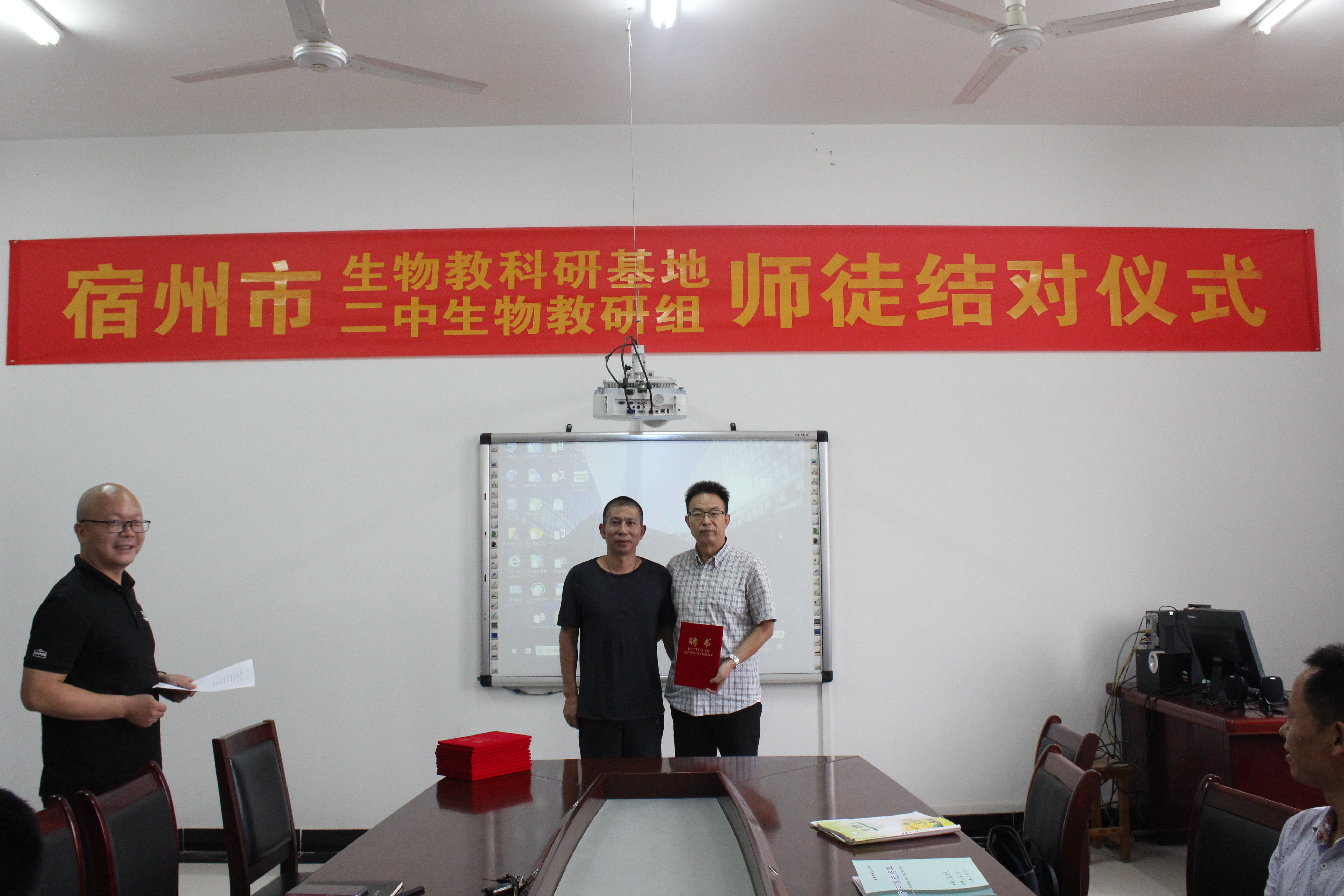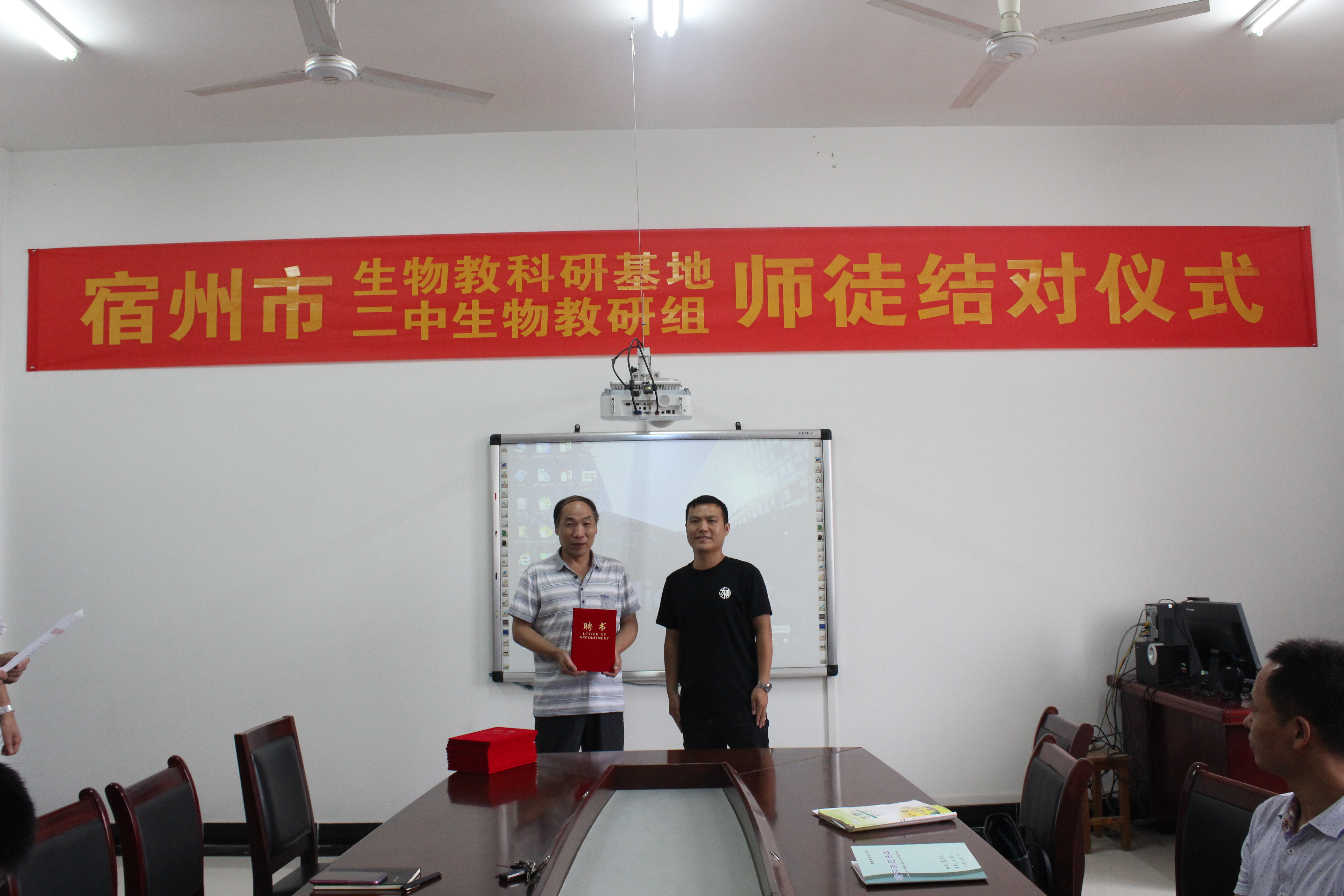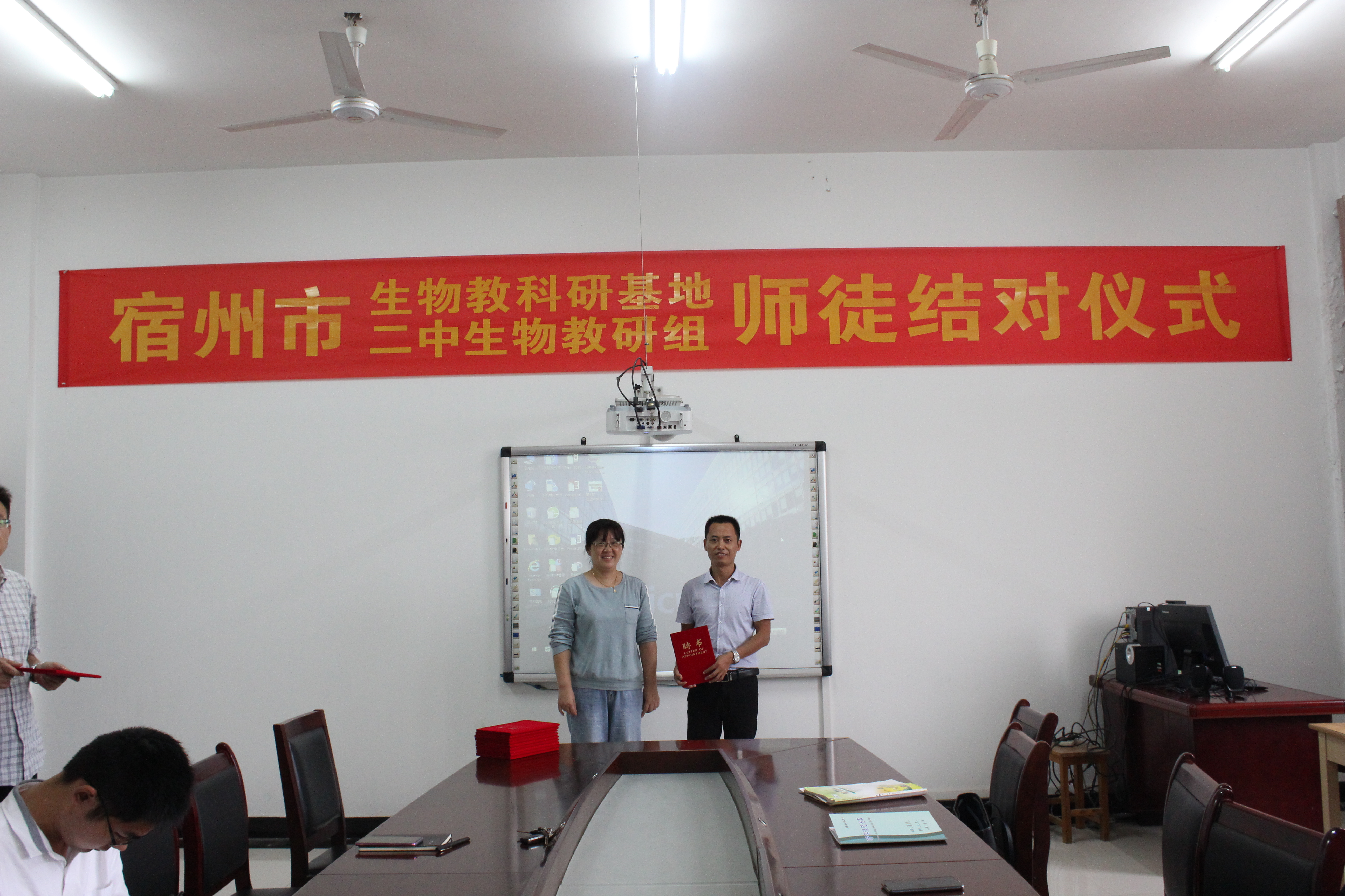 宿州二中始終堅持“以教師發(fā)展,促學校發(fā)展”的管理理念,在完善教師培養(yǎng)計劃的基礎上,努力尋找教師的“最近發(fā)展區(qū)”,不斷增強學??沙掷m(xù)發(fā)展的內(nèi)驅(qū)動力。9月16日,宿州二中生物教研組聯(lián)合宿州市生物教科研基地,按照既定教師培養(yǎng)計劃,在重崇真辦公樓四樓生物教科研基地舉行了師徒結(jié)對儀式,開啟新一輪教師校本培訓的征程。宿州市生物學科教科研基地負責人、副校長吳立清,宿州二中生物教研組長劉峰和新一輪“教師培養(yǎng)計劃”新結(jié)對的10對師徒參加會議。會議由劉峰老師主持并宣讀師徒結(jié)對名單。