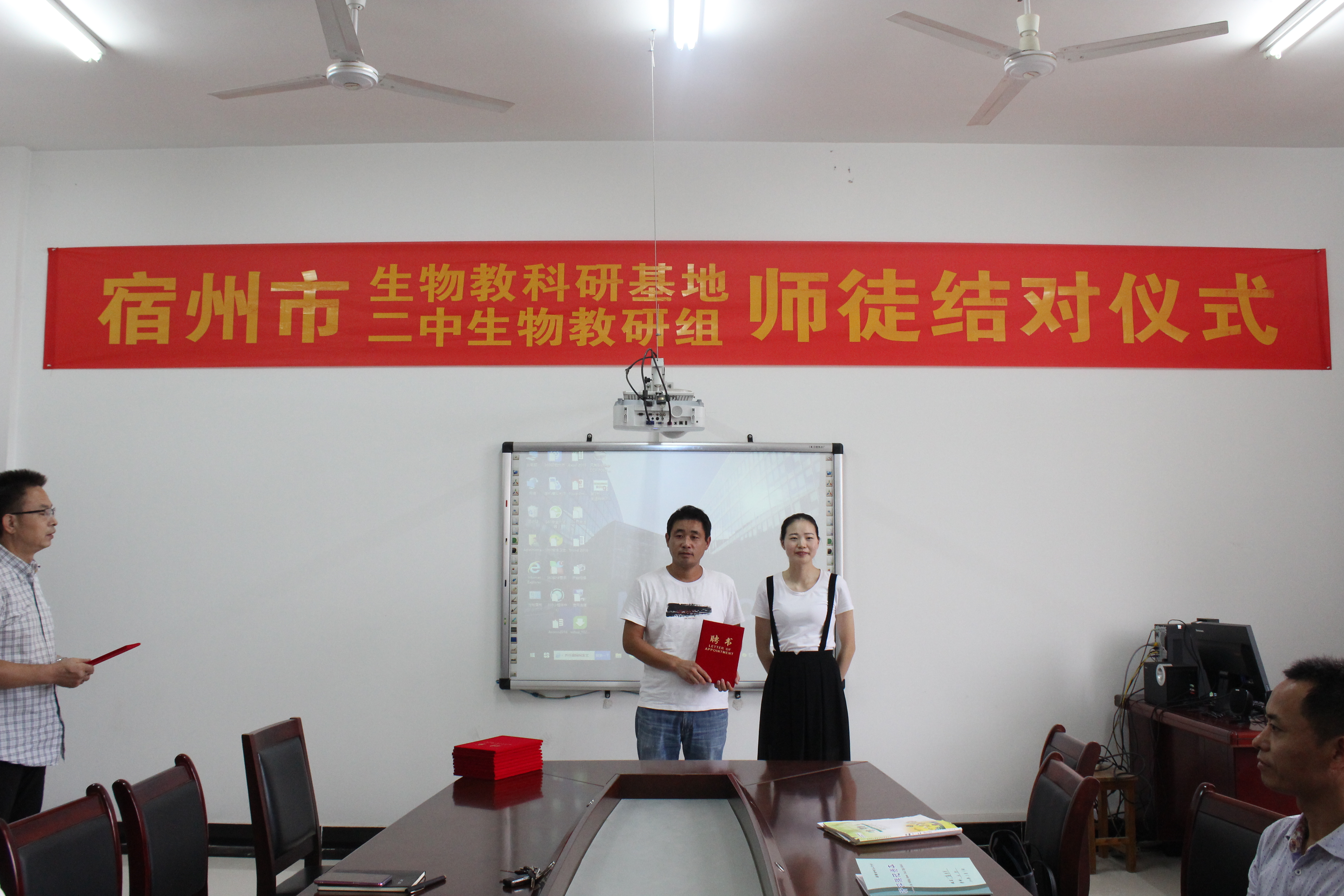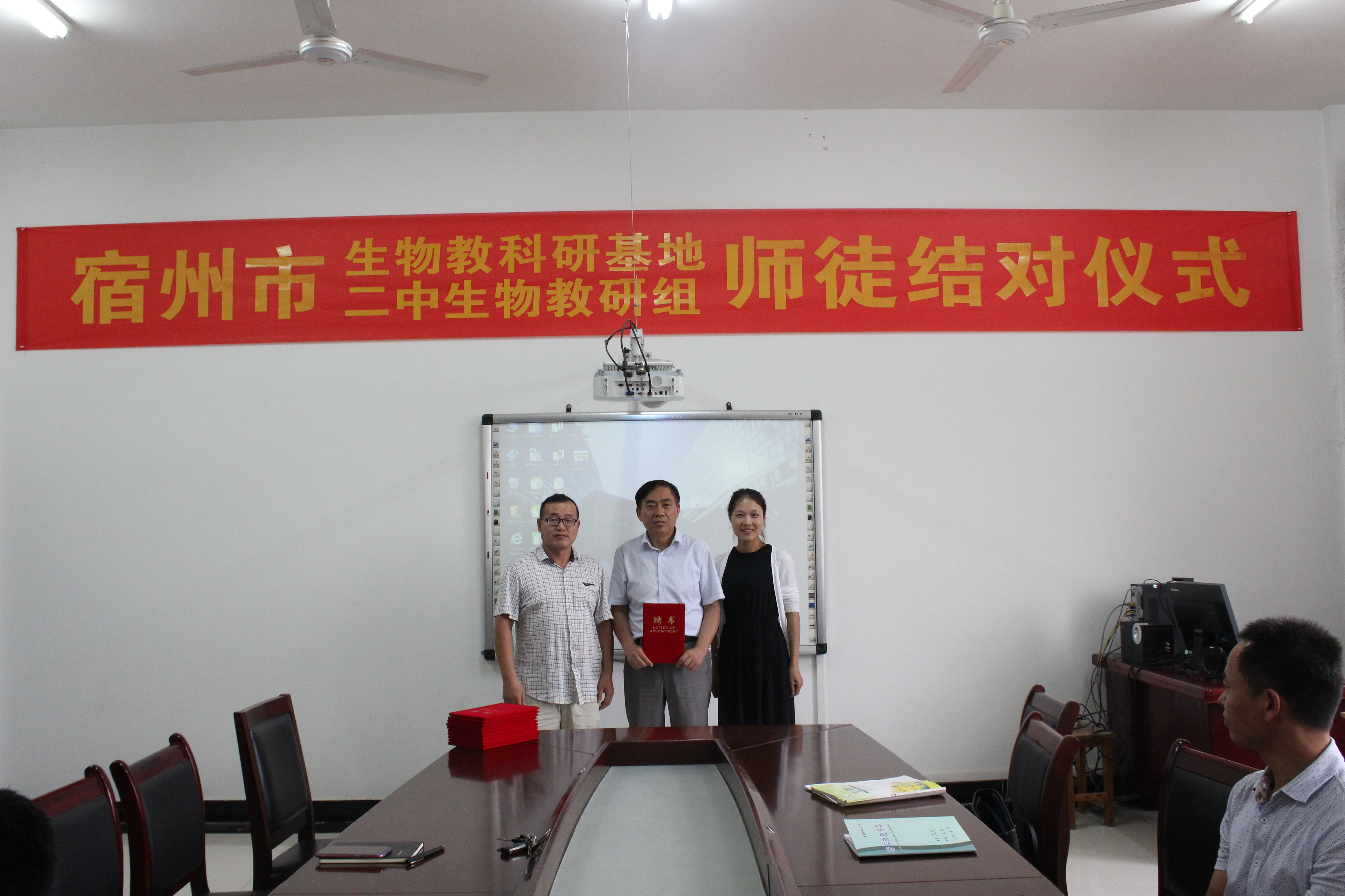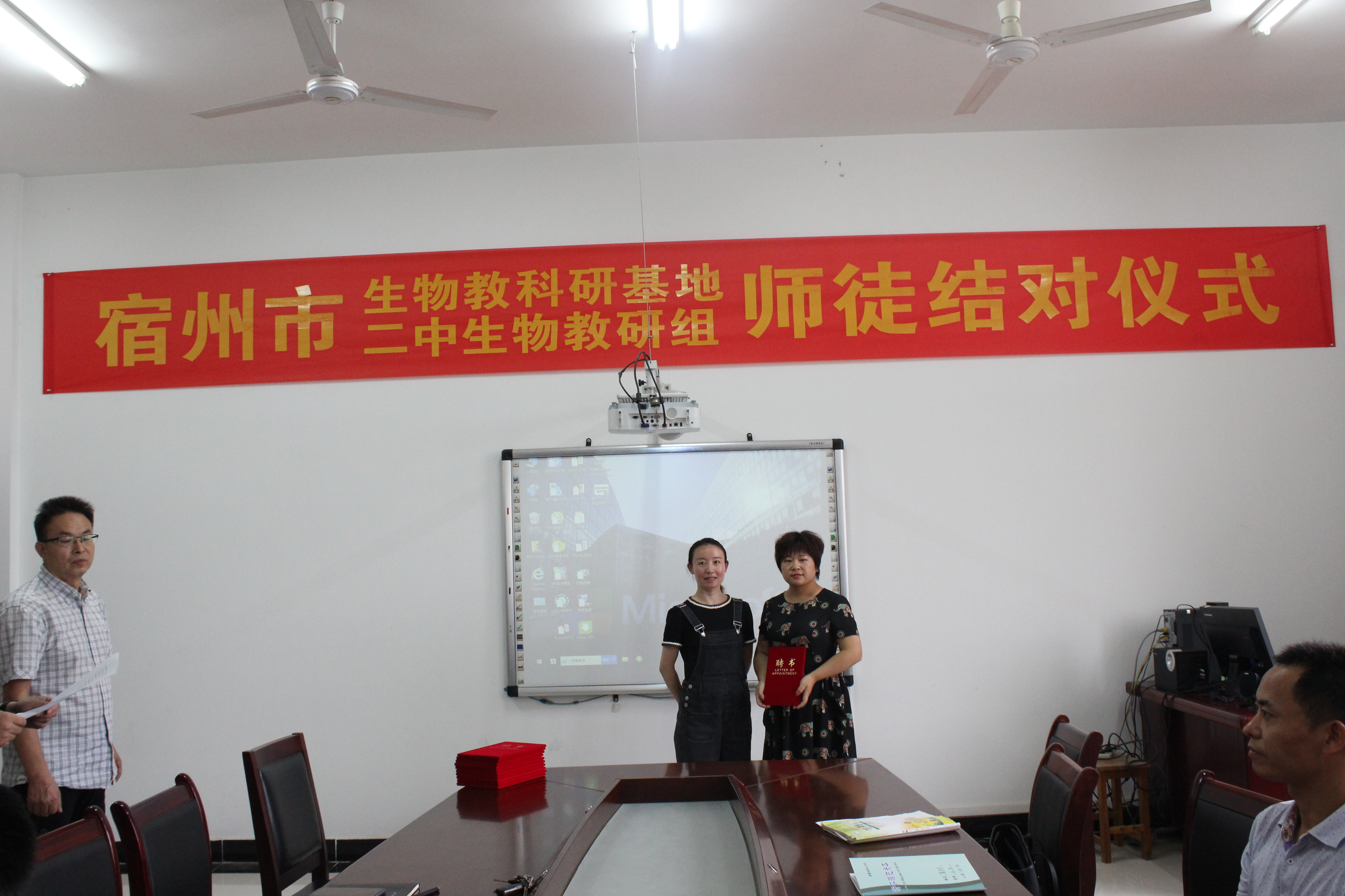 宿州二中始終堅持“以教師發(fā)展,促學校發(fā)展”的管理理念,在完善教師培養(yǎng)計劃的基礎上,努力尋找教師的“最近發(fā)展區(qū)”,不斷增強學??沙掷m(xù)發(fā)展的內(nèi)驅(qū)動力。9月16日,宿州二中生物教研組聯(lián)合宿州市生物教科研基地,按照既定教師培養(yǎng)計劃,在重崇真辦公樓四樓生物教科研基地舉行了師徒結(jié)對儀式,開啟新一輪教師校本培訓的征程。宿州市生物學科教科研基地負責人、副校長吳立清,宿州二中生物教研組長劉峰和新一輪“教師培養(yǎng)計劃”新結(jié)對的10對師徒參加會議。會議由劉峰老師主持并宣讀師徒結(jié)對名單。