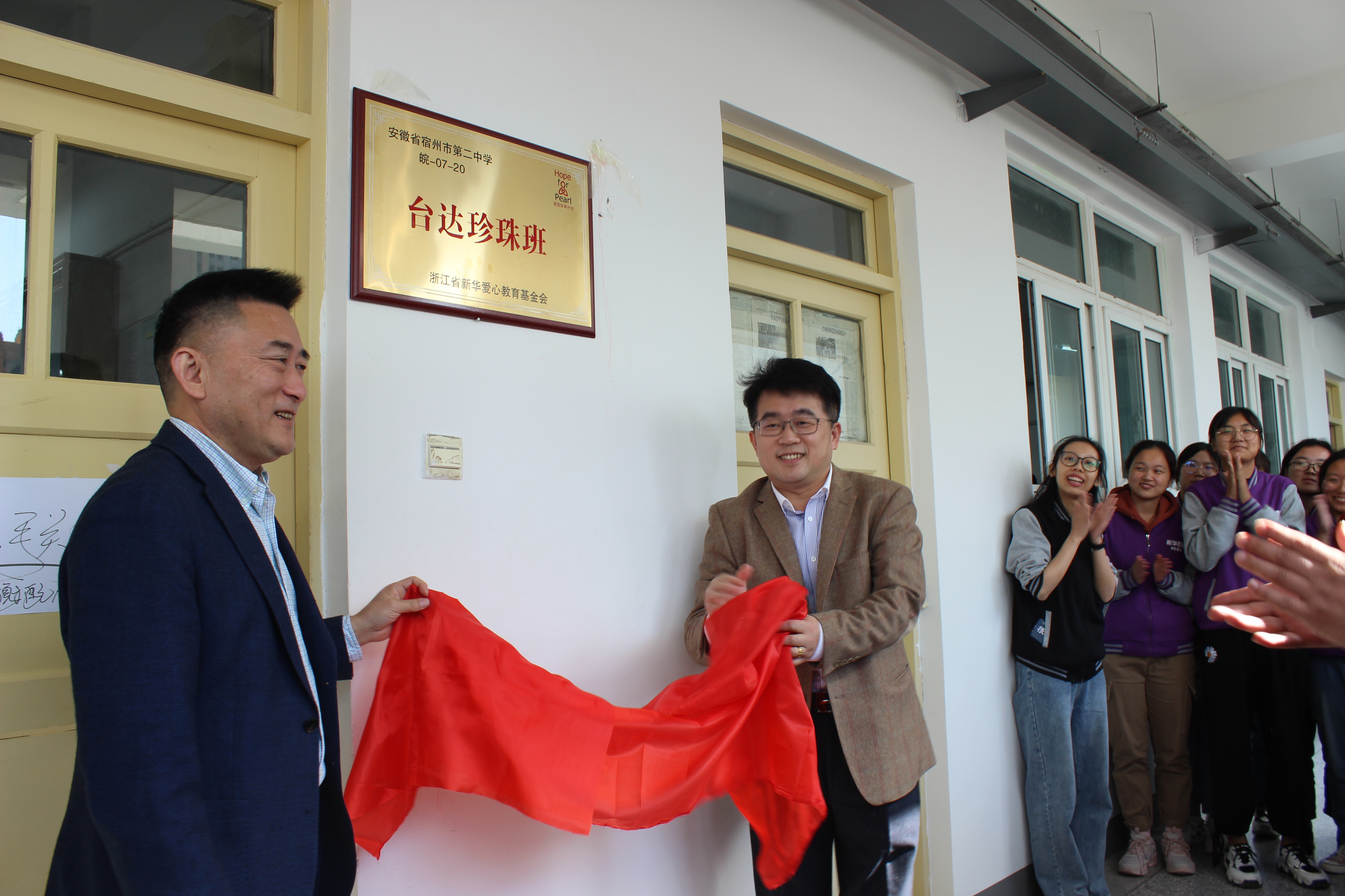 ? ?23日上午9點(diǎn),愛心捐方臺(tái)達(dá)集團(tuán)一行四人準(zhǔn)時(shí)抵達(dá),2020級(jí)臺(tái)達(dá)珍珠班開班儀式正式開始,開班儀式由宿州二中教研室主任、珍珠班總聯(lián)絡(luò)人程波主持。曹振鋒校長首先代表學(xué)校向來校訪視珍珠生的兩位老師表示欽佩和感謝,向愛心捐方臺(tái)達(dá)集團(tuán)表示感謝和由衷的敬意,接著介紹了學(xué)校的基本情況,最后又從教育理念、品格教育等方面重點(diǎn)介紹了學(xué)校在珍珠班管理方面所做的工作,同時(shí)勉勵(lì)小珍珠們努力學(xué)習(xí)、服務(wù)社會(huì)、報(bào)效祖國;接著,錢鋆鸞老師的發(fā)言情真意切,劉肯和廠長的分享則讓我們真切感受到企業(yè)家的社會(huì)責(zé)任與擔(dān)當(dāng)。珍珠生代表郝曉慧同學(xué)結(jié)合自身的經(jīng)歷做了感恩分享,對基金會(huì)和愛心人士的善舉致以深深地謝意。開班儀式結(jié)束后,曹振鋒校長與劉肯和廠長一起為2020級(jí)臺(tái)達(dá)珍珠班揭牌。